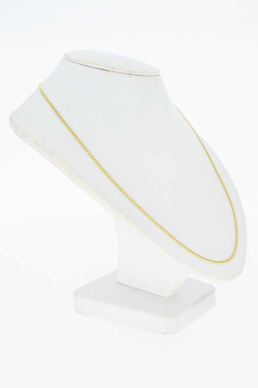 In zeer goede staat; 14 karaat geel gouden geslepen Gourmetketting met dubbel eindstuk en veersluiting - 45 cm.