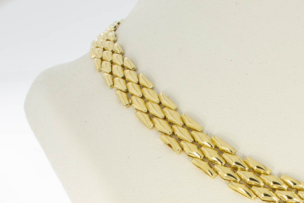 De Tank ketting kenmerkt zich doordat hij de uitstraling van de banden van een tank heeft. De ketting is wat breder en heeft platte schakels. Deze bijzondere kettingen zijn geschikt voor mannen en vrouwen en verkrijgbaar in geelgoud en bicolor. De lengtes variëren. Kunt u niet vinden wat u zoekt? Bekijk dan ook eens de collectie koningskettingen. Wellicht dat u hier wel het juiste sieraad kunt vinden.Bezig met laden...