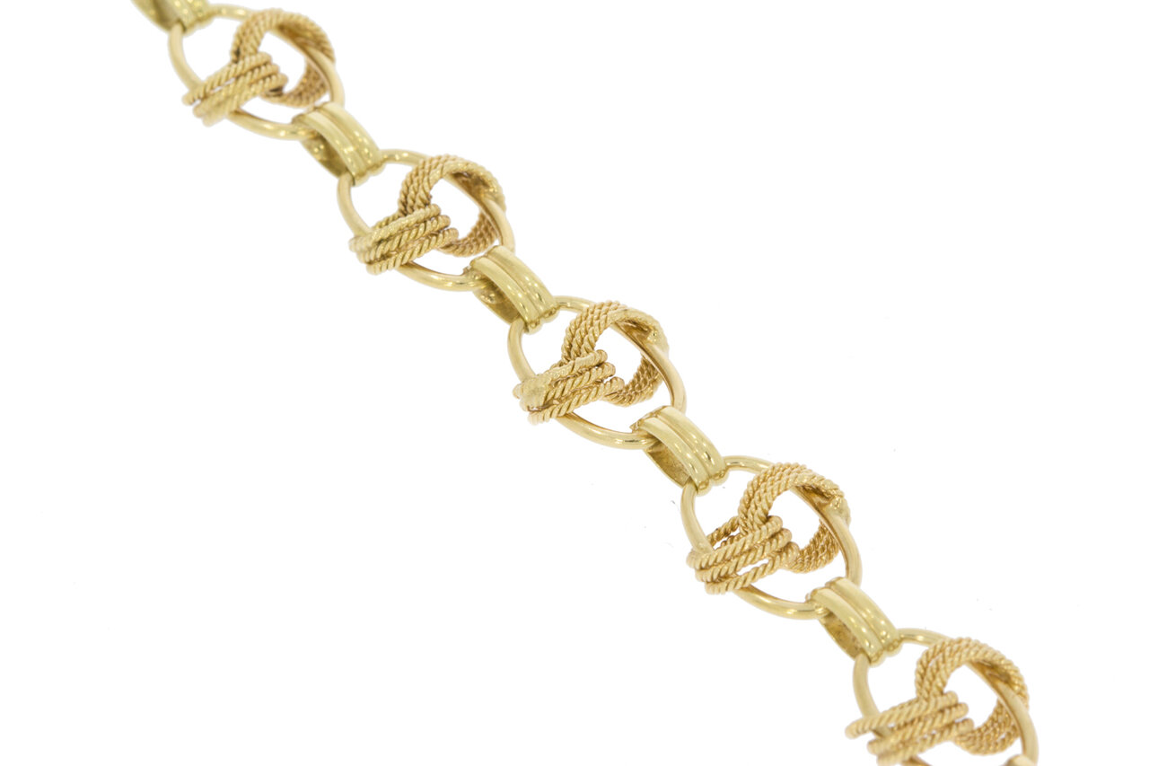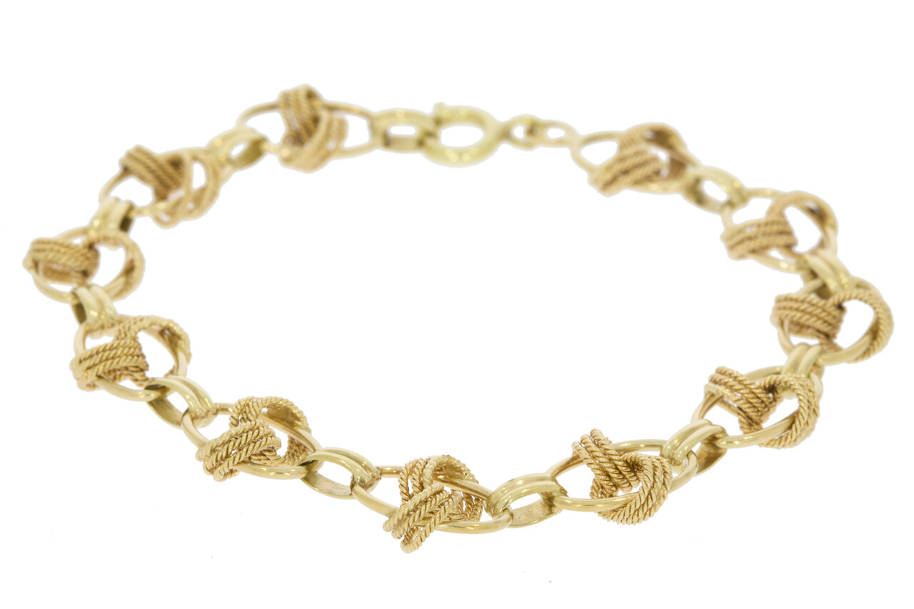 Elk sieraad dat wij verkopen is PreLoved! De sieraden zijn eerder gedragen, maar na zorgvuldige reiniging en eventueel herstelwerk toe aan een tweede leven. Door onze goudsmid worden krasjes verwijderd, sluitingen waar nodig vervangen en de zettingen van diamantjes gecontroleerd.Gouden armband online bestellen