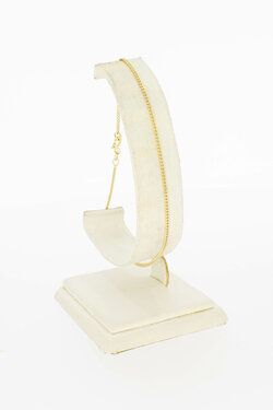 In zeer goede staat, 14 karaat geelgouden gewalste en geslpen Gourmet schakel armband met bakslot en veiligheidsclips - 19 cm