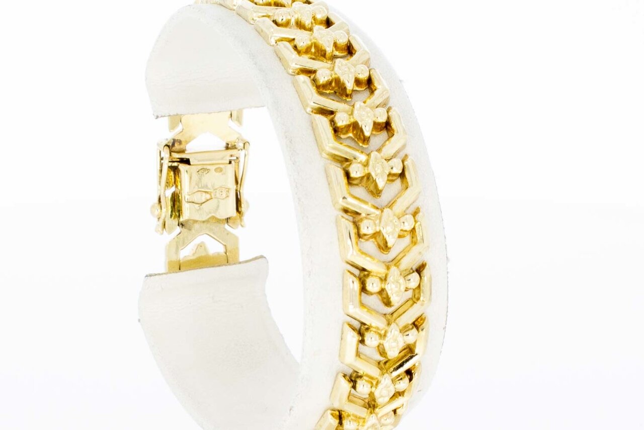 Gouden schakelarmband: Dit is de belichaming van luxe. De zware, solide gouden schakels dragen een gevoel van welvaart en klasse met zich mee. Het is niet alleen een sieraad, maar ook een investering.