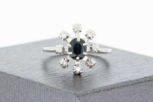 In zeer goede staat; 18 karaat witgouden Markiesring met 8 briljant geslepen witte Saffier en een blauwe Saffier - ringmaat 17,1 mm.