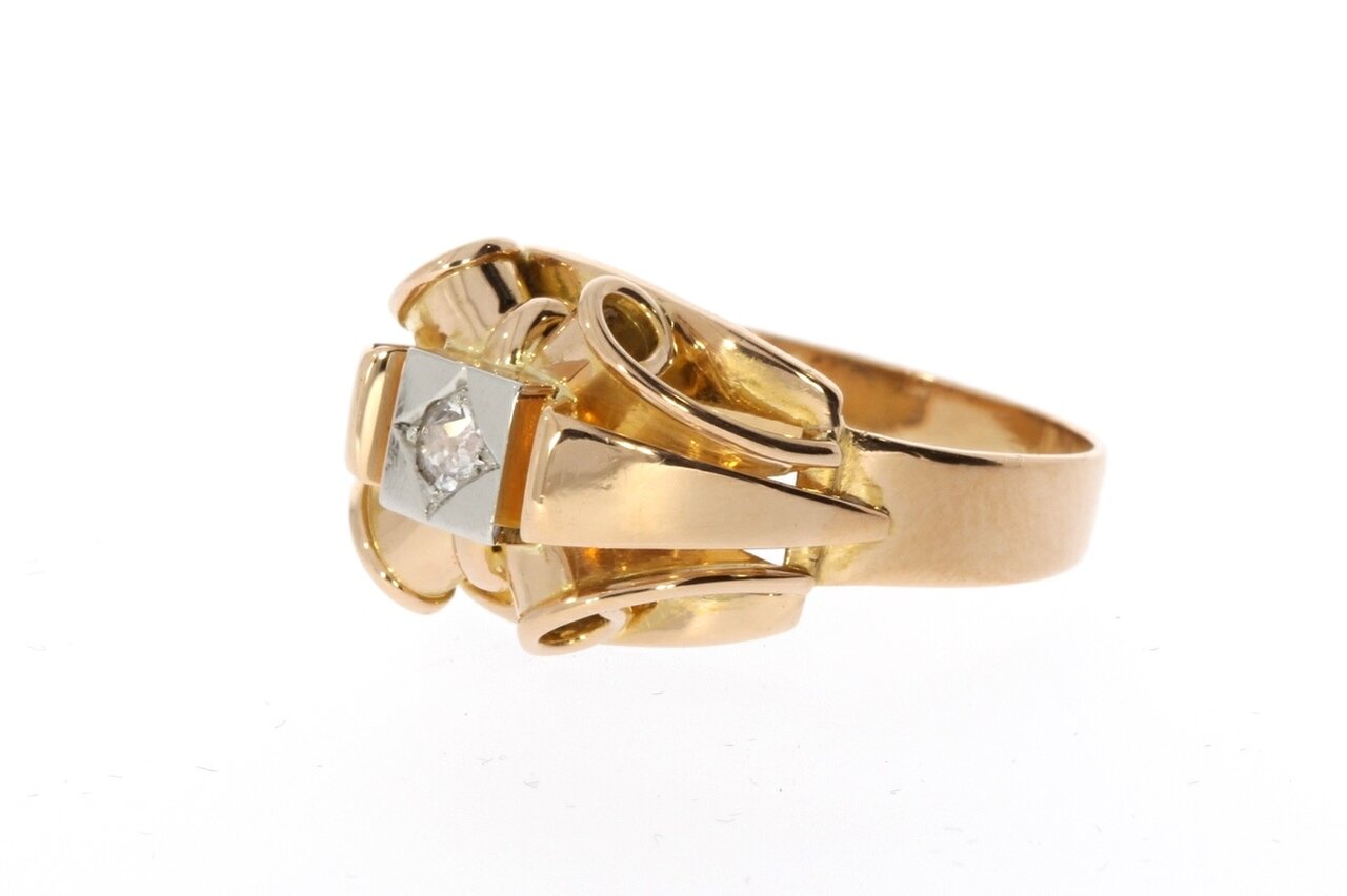 In zeer goede staat; 18 karaat rosé gouden Statement edelsteenring met briljant geslepen Diamant (totaal 0.25 crt) - ringmaat 18,2 mm.