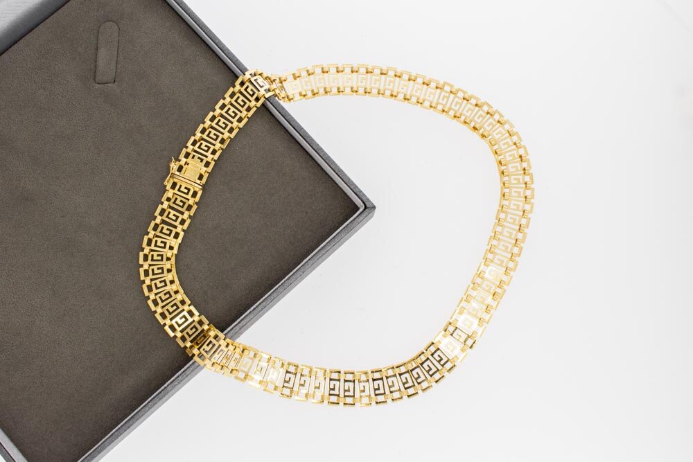 In zeer goede staat; 18 karaat geel gouden "Versace style " Collier met bakslot en extra veiligheidssluiting -  42,3 cm.