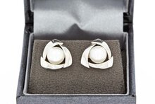 In zeer goede staat, 18 karaat witgouden Parel oorknoppen - diameter 1,2 cm